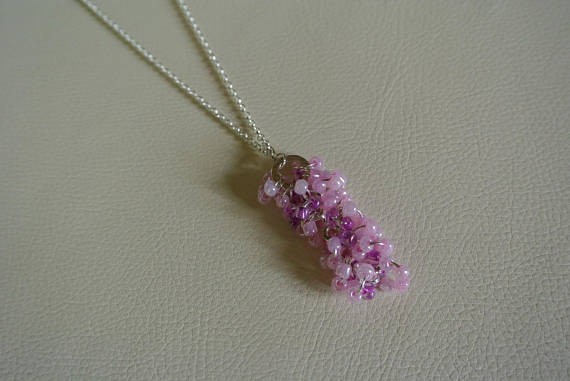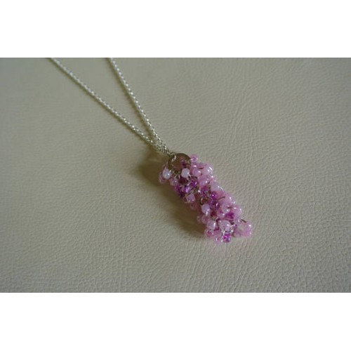 Collier ras du cou grappes de rocaille rose sur un connecteur argenté et chaîne maille ronde 2,5 mm dune longueur de 43 cm, chaînette dextension de 5cm Chaîne sans nickel et sans plomb Vous recevrez le collier pris en photo